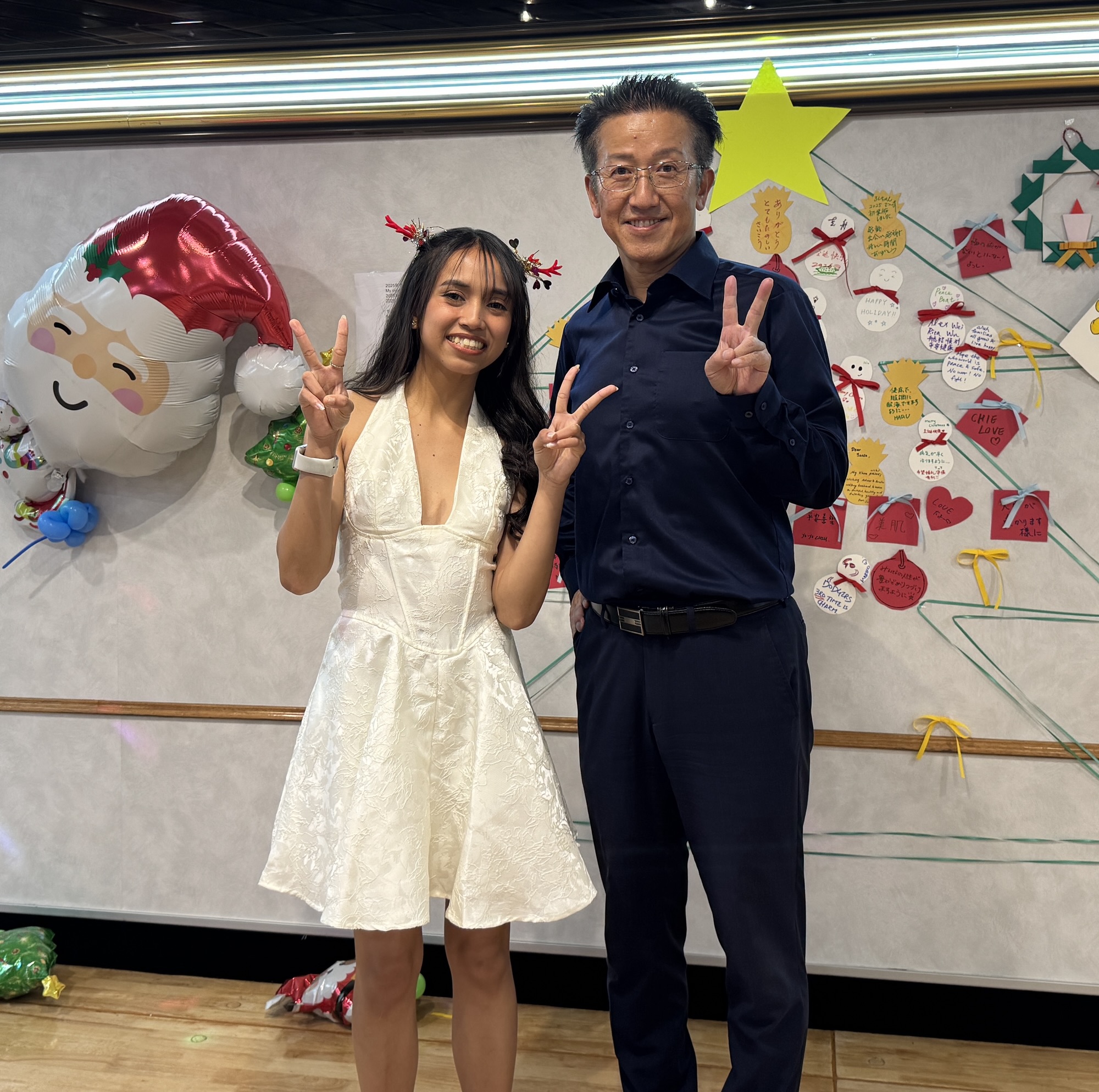 外国人向けサルサレッスンの時も、「先生、お手伝いしましょうか?」と話したら先生が喜んでくれて、先生とのデモダンスをした。外国人のみなさんにも認知されました。