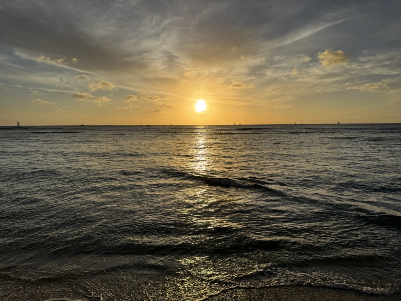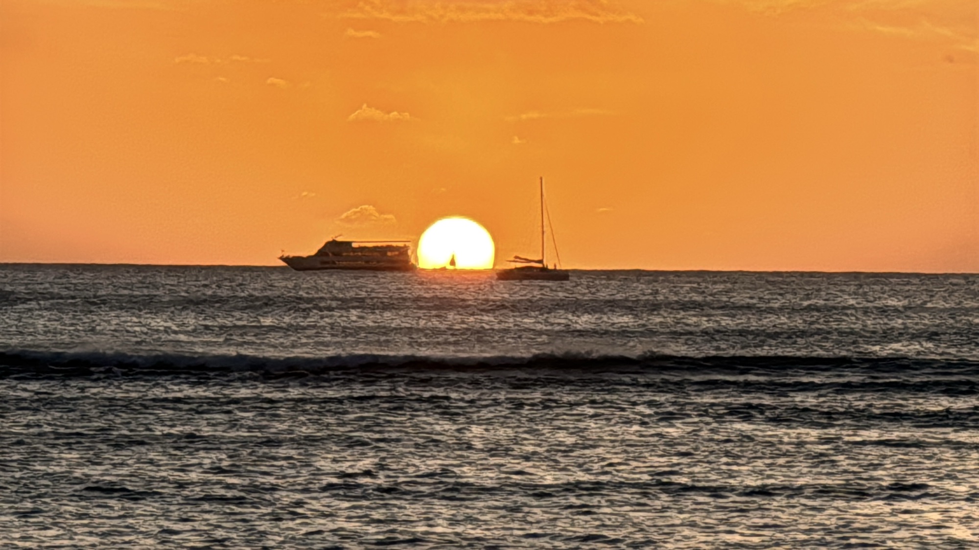 朝9時集合でご夫婦付き添い。楽天ラウンジに行ってチヤホヤしてもらいながら、データ転送。Nビーチで夕方まで過ごす。いつもの場所で夕陽を楽しむ。船に帰ってディナー。
