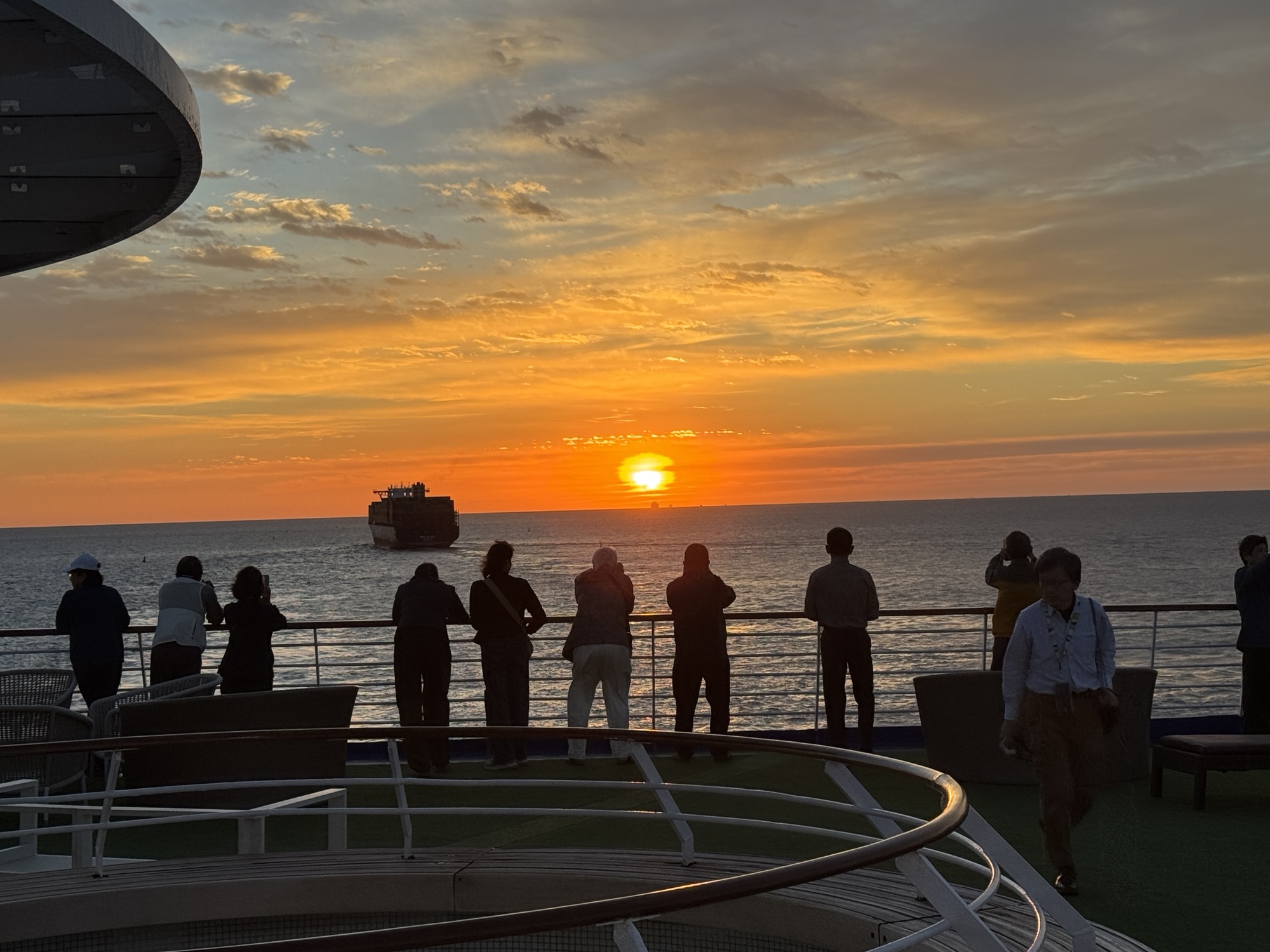 船上の生活は脳みそが溶ける。まず、どんなに寝ても、どの時間に寝ても、誰にも迷惑をかけない。プールサイドで日向ぼっこもたまらない。食事も朝6時から夜12時まで食べ放題だ。日本人向けの味付けでおいしい。フルーツもふんだんにある。なんか、本当に脳みそが溶けるよ。すごい世界だ。あっという間にブログ更新を9日さぼった。