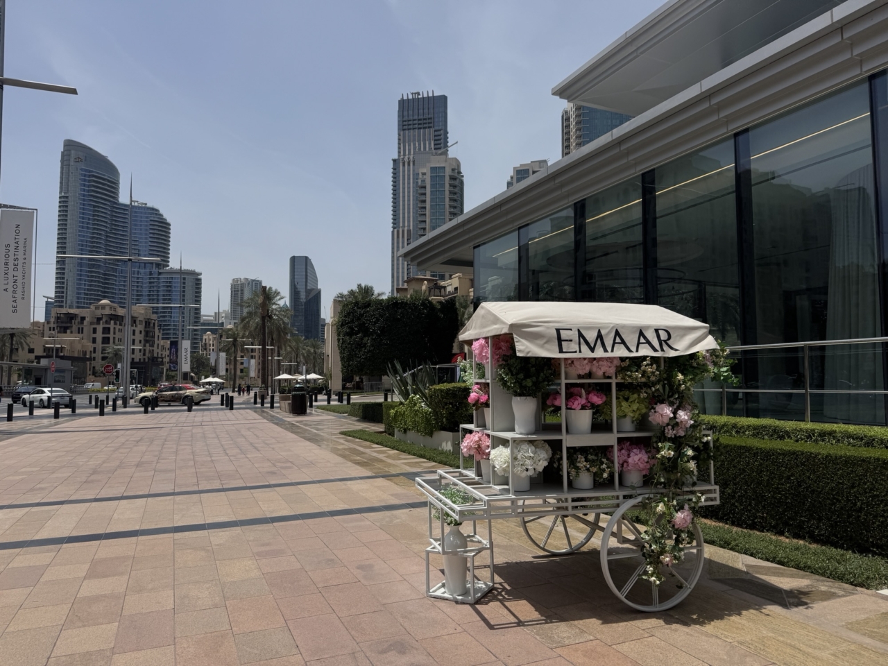 ああ、誰かにお花をプレゼントしたいなって思うようなお花屋さん。よく見ると店員はいない、よく見ると全て造花。EMAARの宣伝だった。公道を使っても許されるEMAAR。あやかりたい。