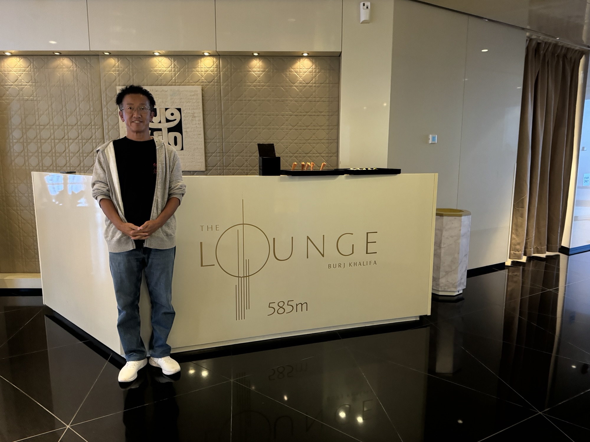 ものすごく早いエレベーターで124F、さらに裏道のようなところからエレベーターで154F(最上階)へ。