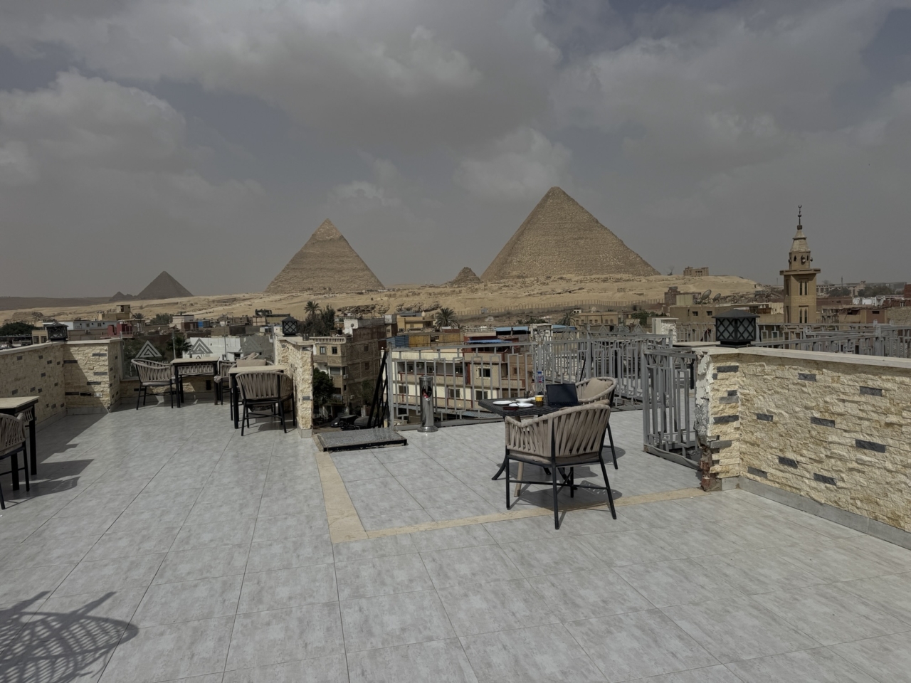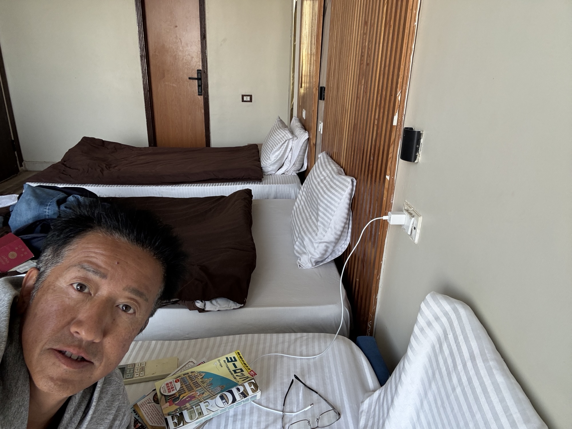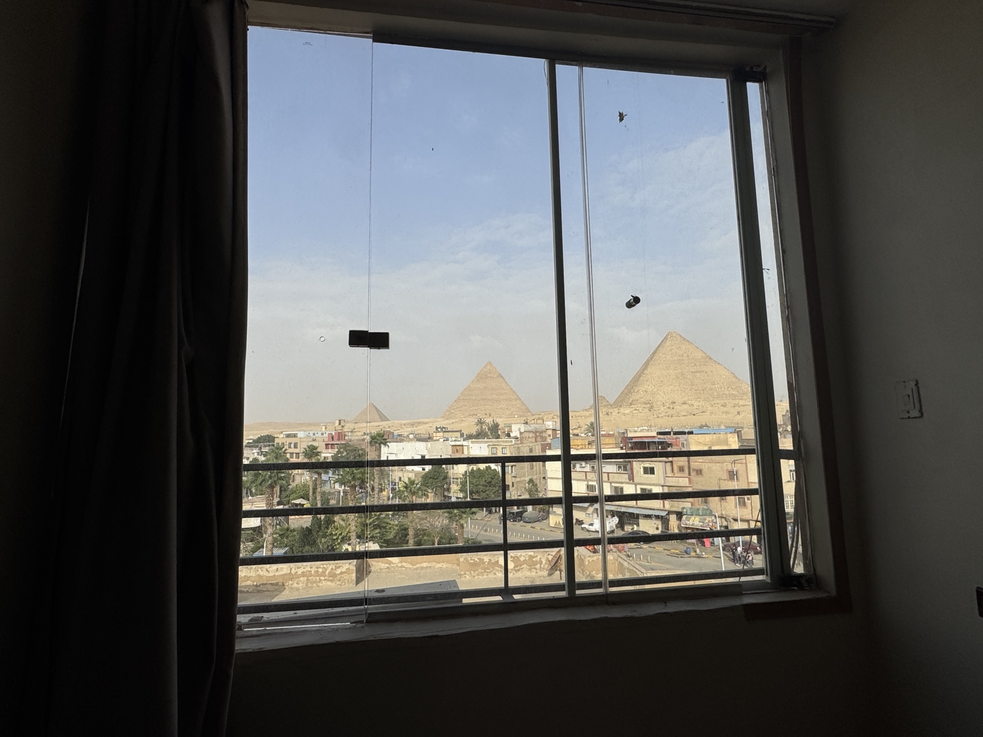 4階建の4階。ピラミッドビュー。スリーベッズ。朝食付き。1泊2220円。