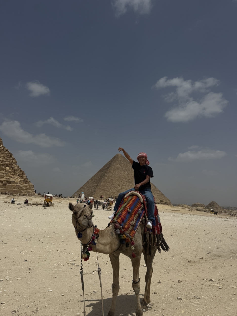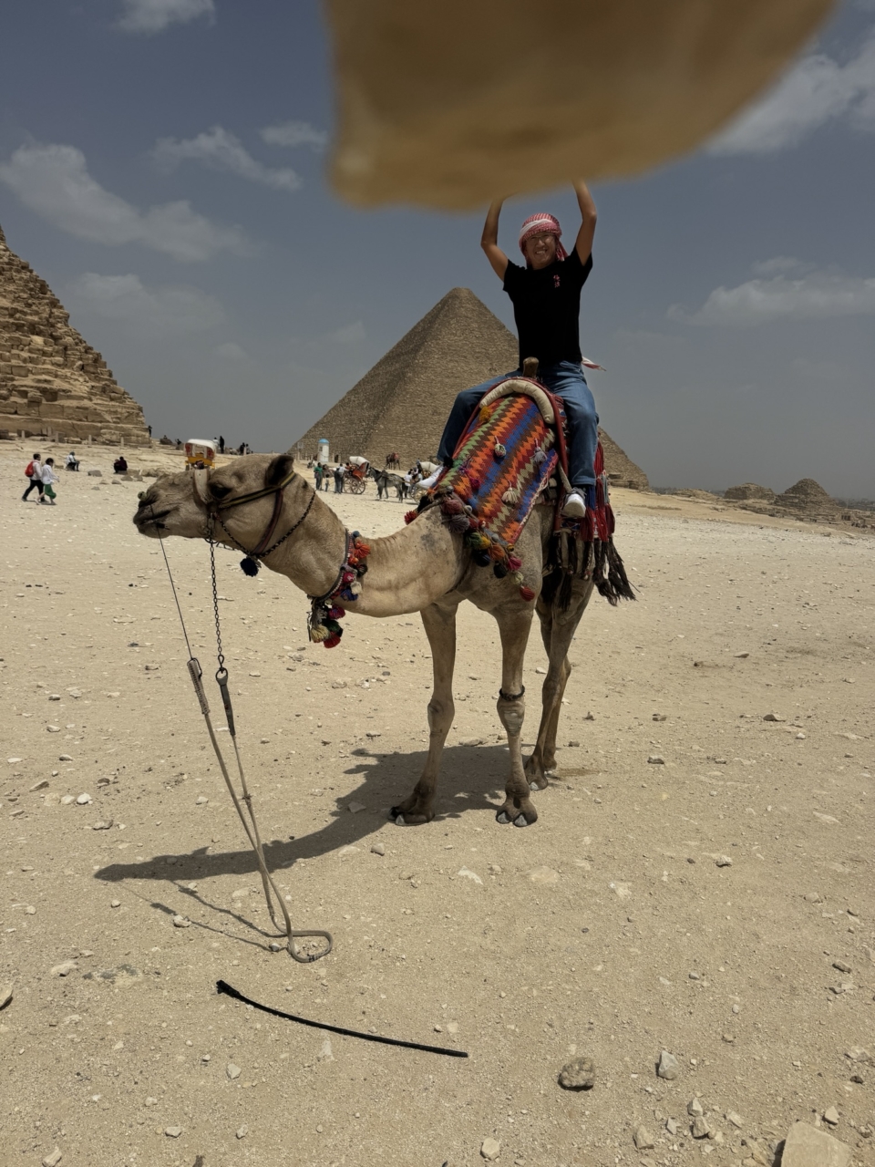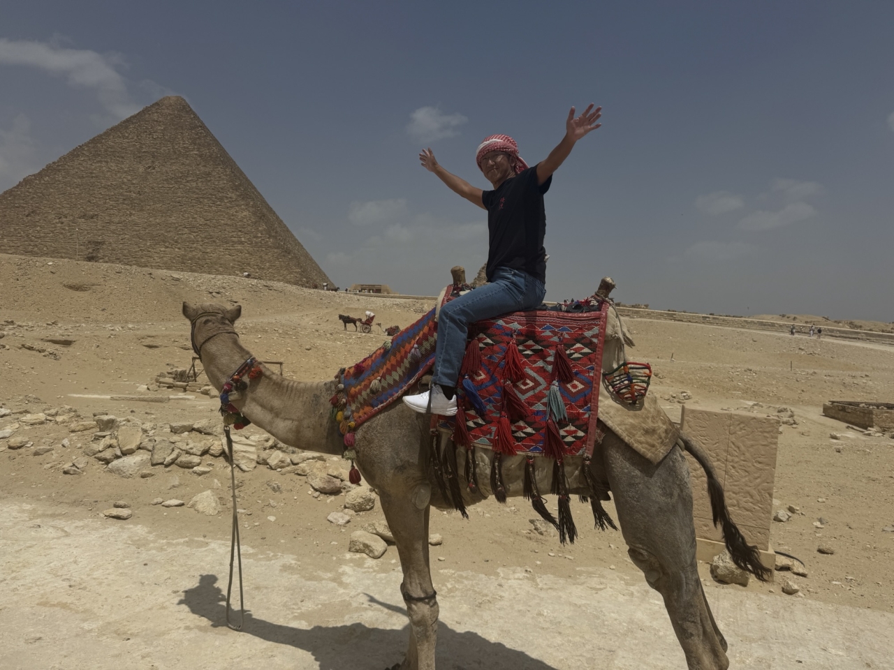 悪そうなやつだったけど、10ドルでいいって言うから乗ってやった。ラクダを引きながら「あなたが幸せだったら、私も幸せになりたい」って何度も言うんだ。「バクシーシ(喜捨、チップみたいなもの)はわかってるから、もう言うな」って一喝してやった。まあ、いい写真も撮ってくれたから、10USDを渡して、そのあとで100エジプトポンドを渡そうとした。そしたら少ないと言うので「じゃ、さよーなら」と渡さずに背を向けて歩き出してやった。慌てて追いかけてきて、謝るので、100を渡してやった。