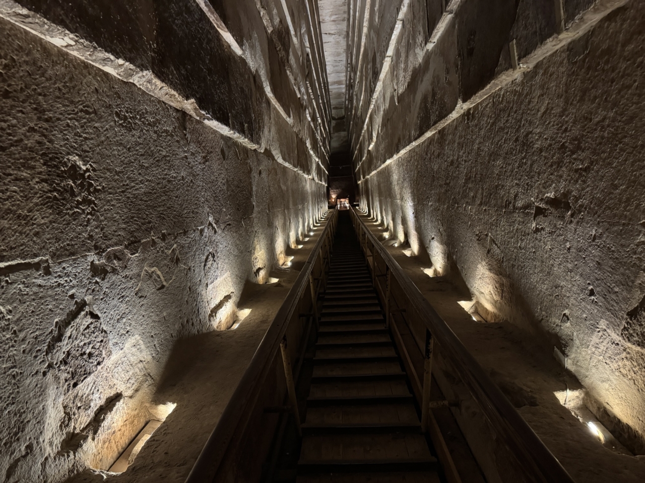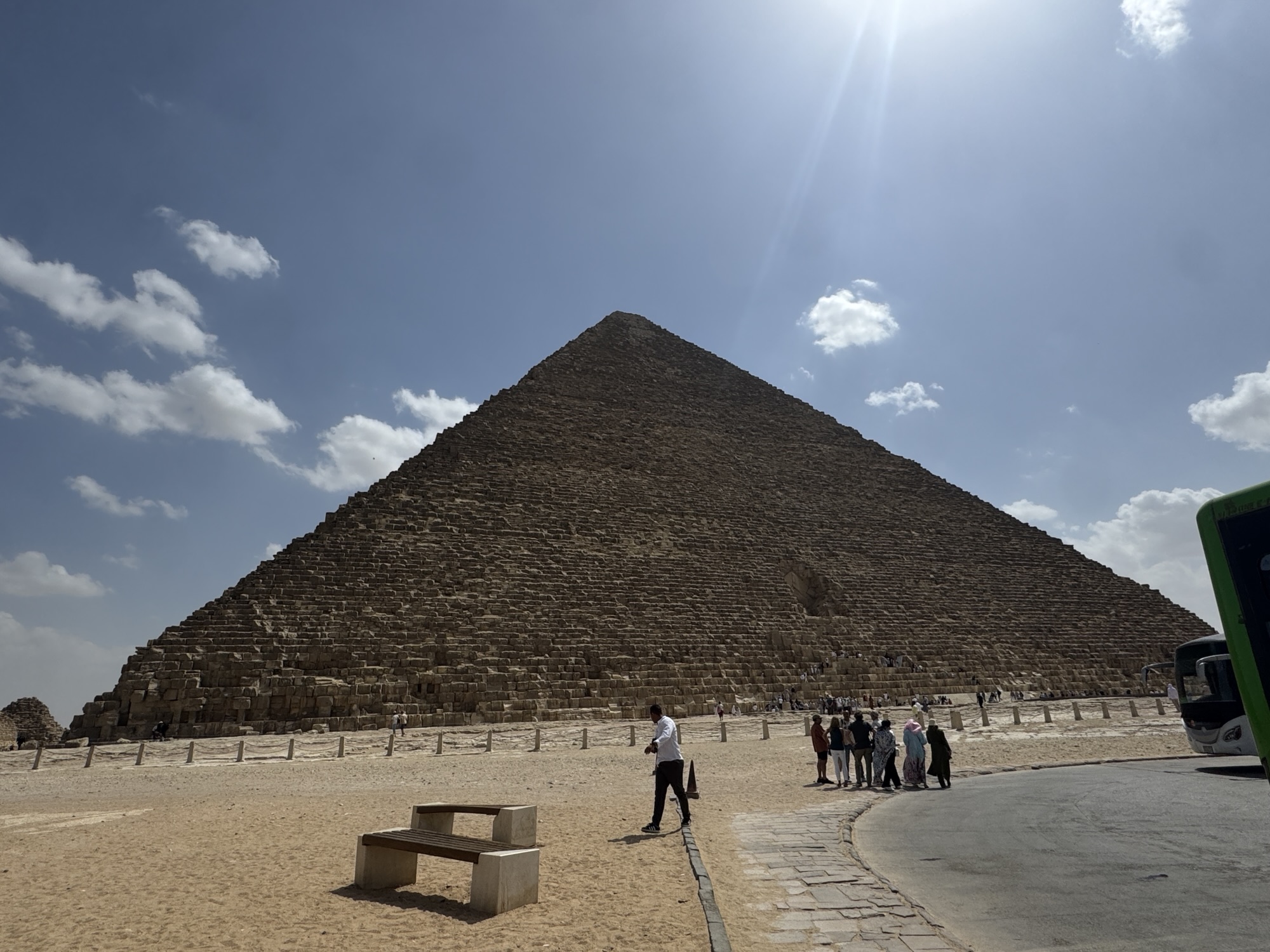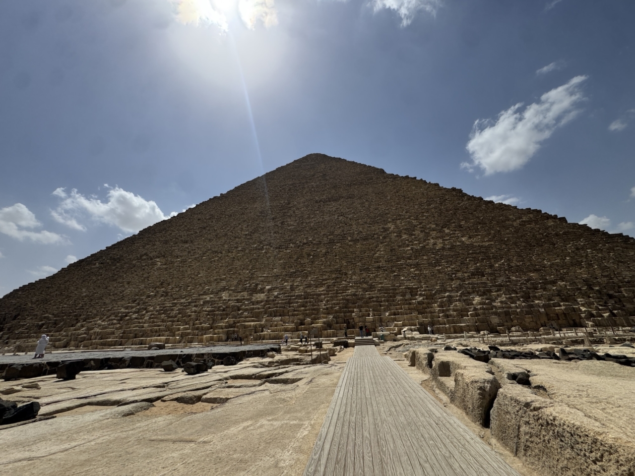クフ王のやつ。すぐ近くまで行けるのでめっちゃ登りたい気持ちになる。中にも入ったが、ただこの巨大な石を積むだけでも大変なのによくも通路まで作ったなぁって感動した。