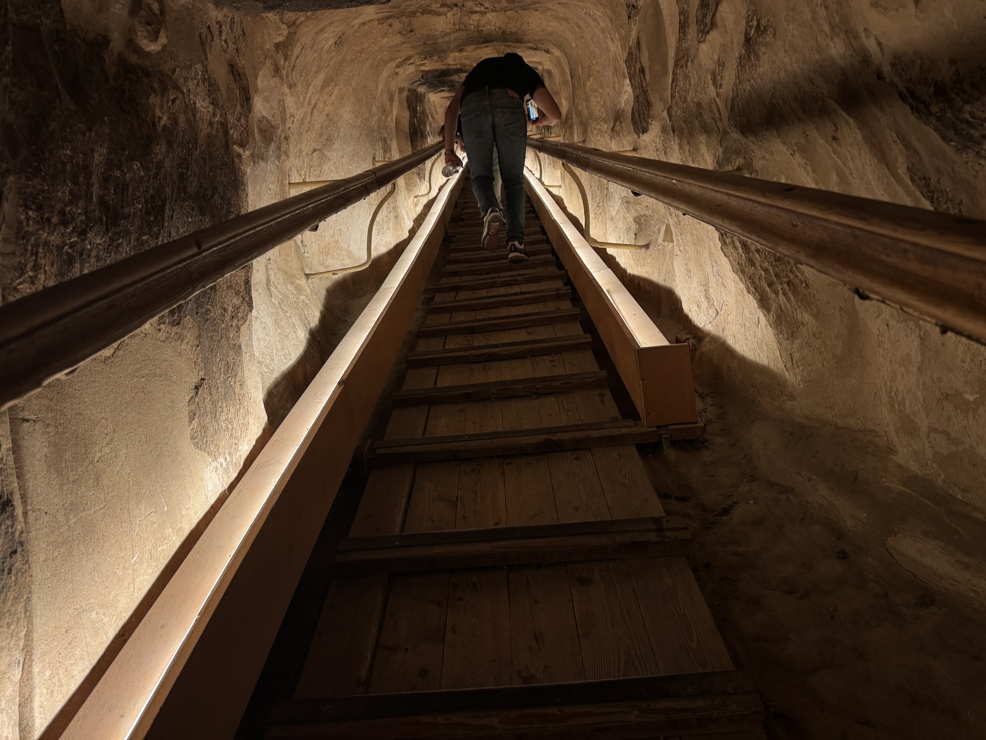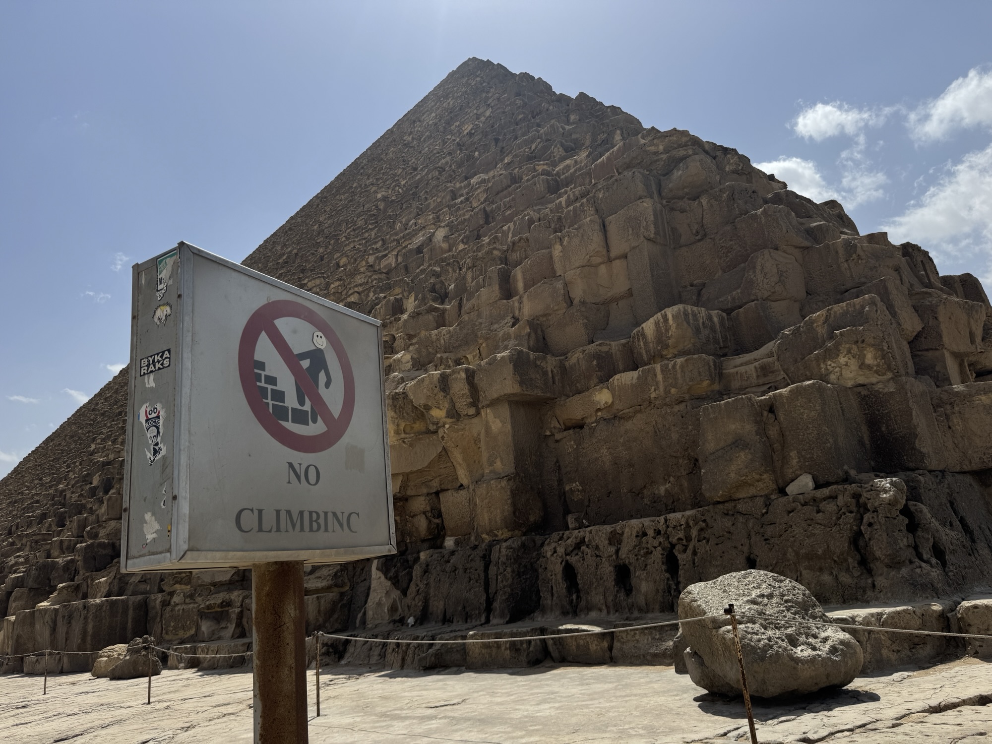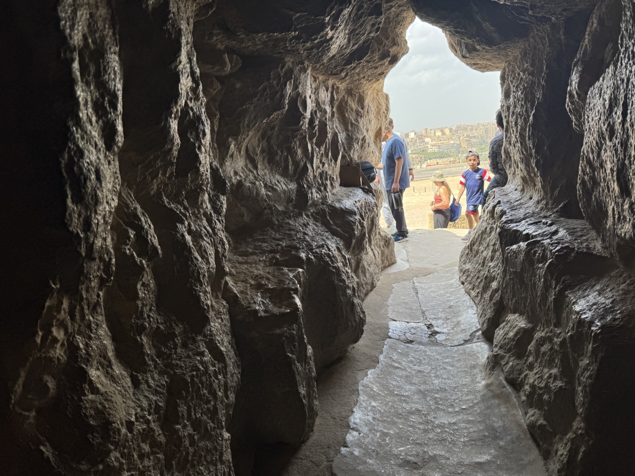 クフ王のやつ。すぐ近くまで行けるのでめっちゃ登りたい気持ちになる。中にも入ったが、ただこの巨大な石を積むだけでも大変なのによくも通路まで作ったなぁって感動した。