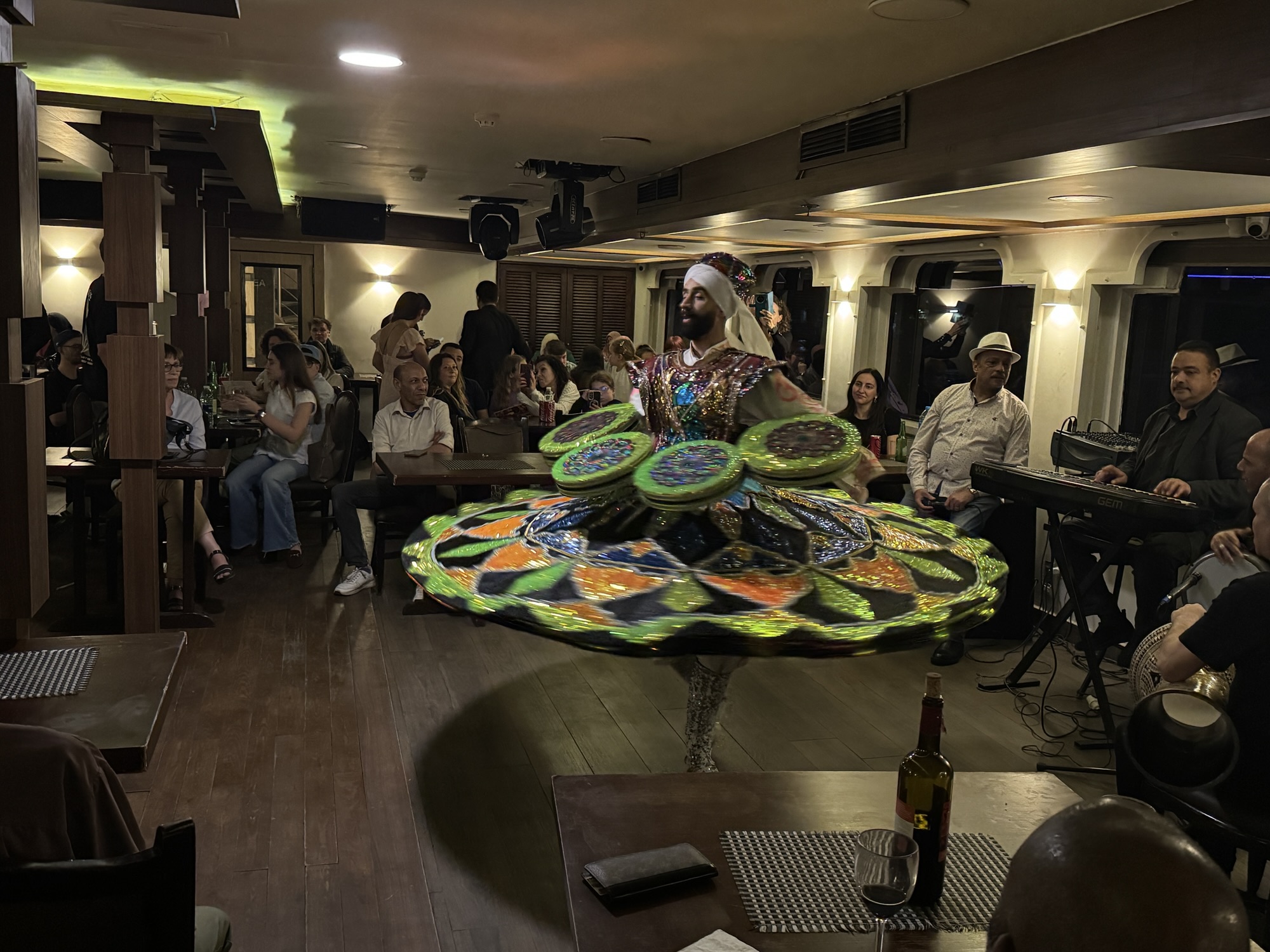 食事は美味しかった。ベリーダンス(写真はない)も上手だった。タヌーラって言ったかなぁ、男性がスカート見たいのを来てずーっとぐるぐる回るの。多分連続で500回くらい回るんだと思う。すげーな。でも、エジプトが嫌いすぎて、あんまり楽しめなかった。
