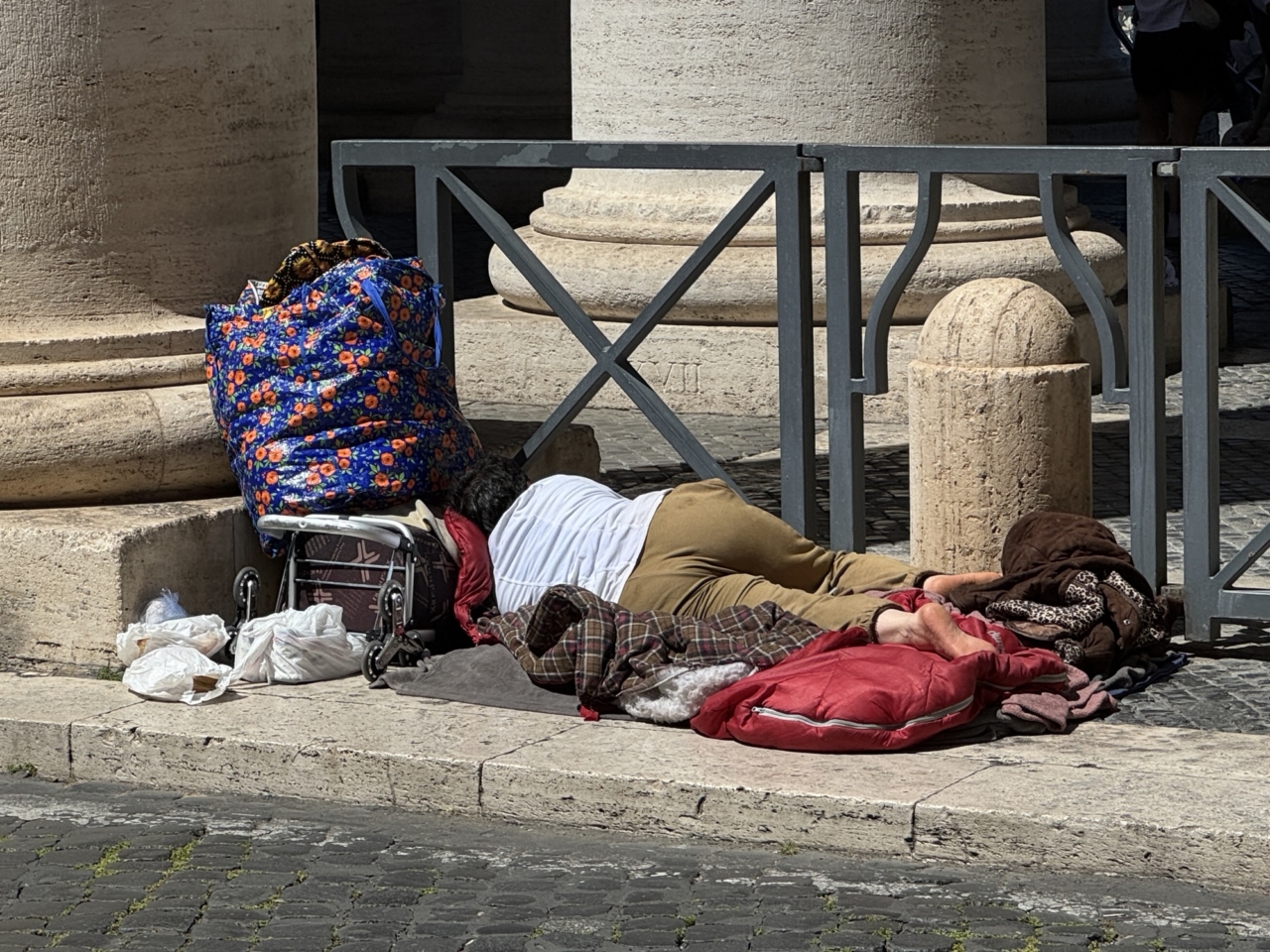 ローマにもいた。でも数が少ない。そして、仲間が居なそうだ。物乞いもいる。