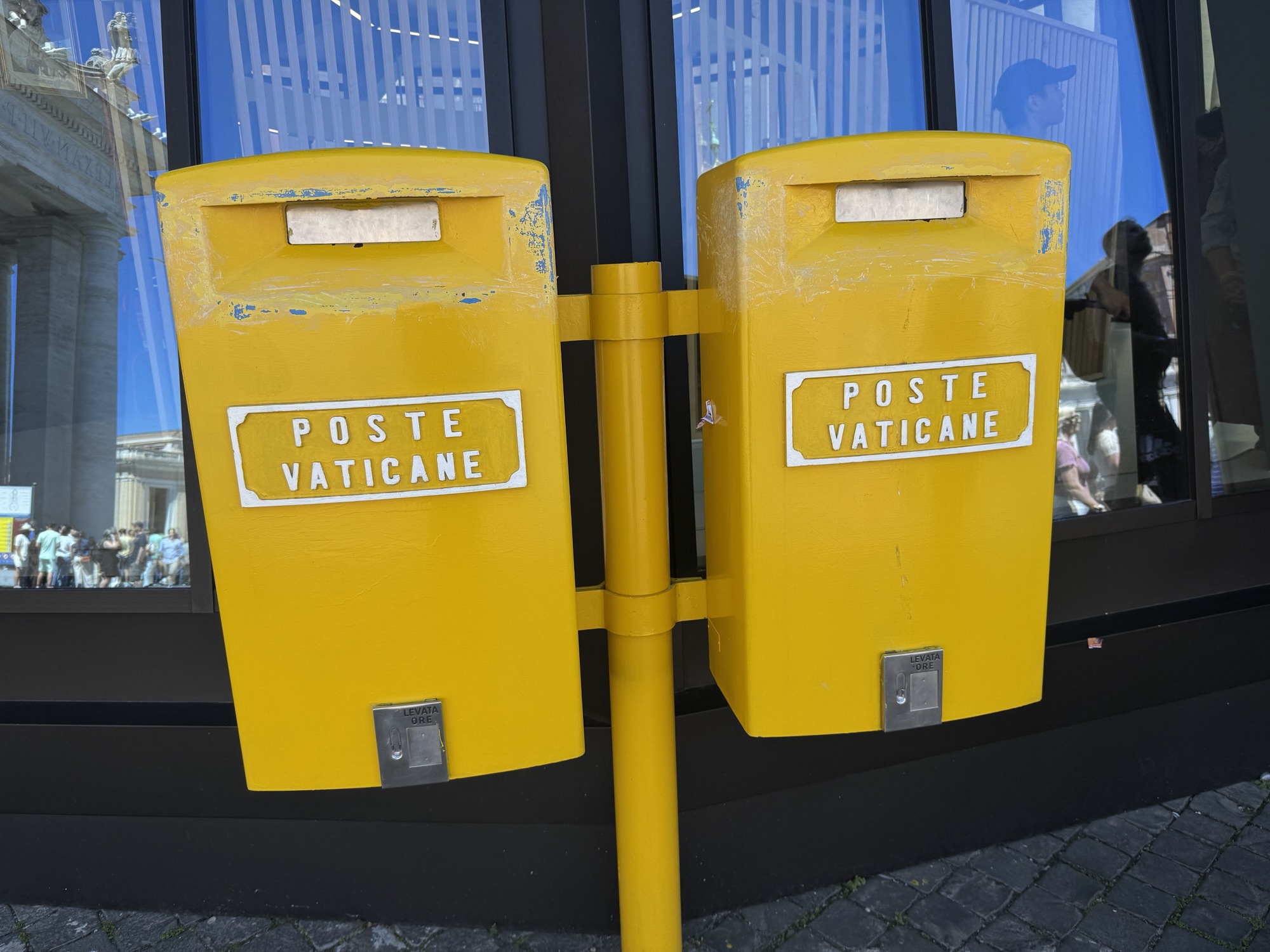国によっては絵葉書を全然売ってなかったり、すごく高かったりするんだけど、ローマはあちこちに絵葉書があった。昨日の街歩きの時に、法的に日本では配達してくれなさそうなハガキがあちこちで売ってたんだよね。「こんなの、出せる相手がいないよなぁ」って思って買わなかったんだけど、今朝、出せる相手を考えついて、買うことにした。でもね、バチカンに向かう道では、それが全然売られてないの。さすが、ローマ法王のお膝元だなって思った。それで、バチカンでしか売ってない(バチカンとローマ市内の郵便局でしか使えない)ローマ法王の切手を買って、そのろくでもないハガキに貼って投函した。彼らの大爆笑を想像しただけで、俺は幸せだ。
