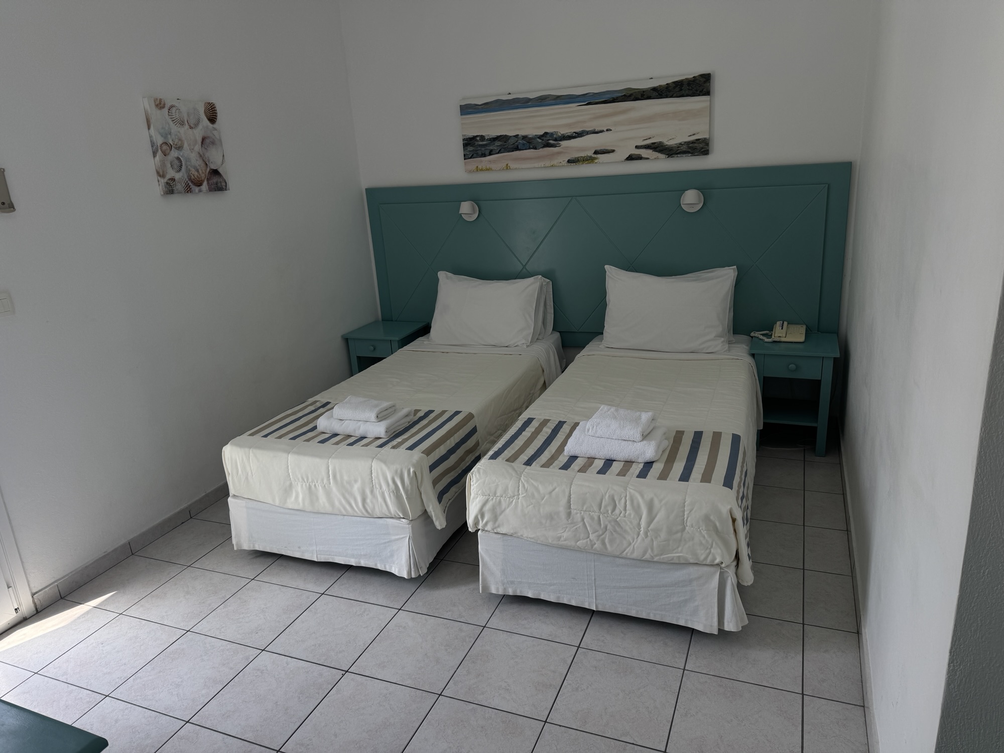 部屋は狭いし、バス(シャワー)・トイレ共同だが、窓からパルテノン神殿が見えるし、神殿まで1.2kmで歩いて行けるし、good だ。
