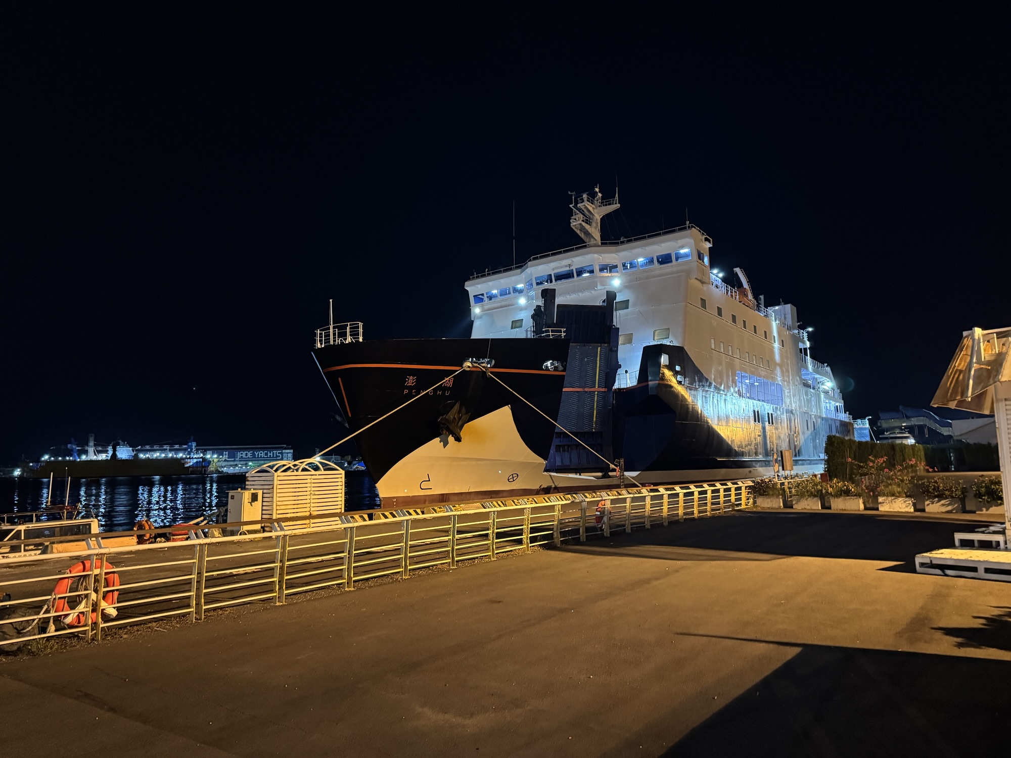 宿は港に面してて、すぐ隣に明日の船がいた。