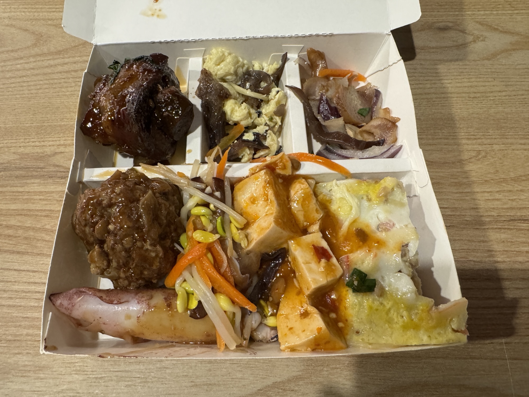 毎日、こればっかり食べてる。好きなもの選び放題で、美味しくて、炭水化物を抜けて、値段が安い。今日は160元。今日も一食だよ。