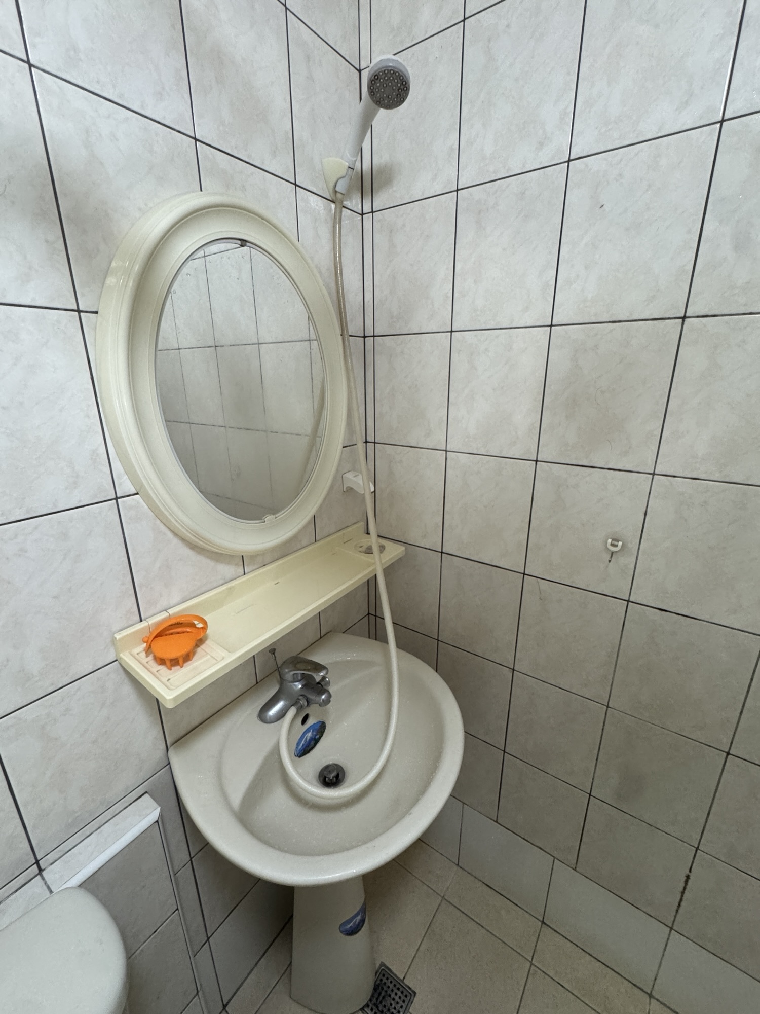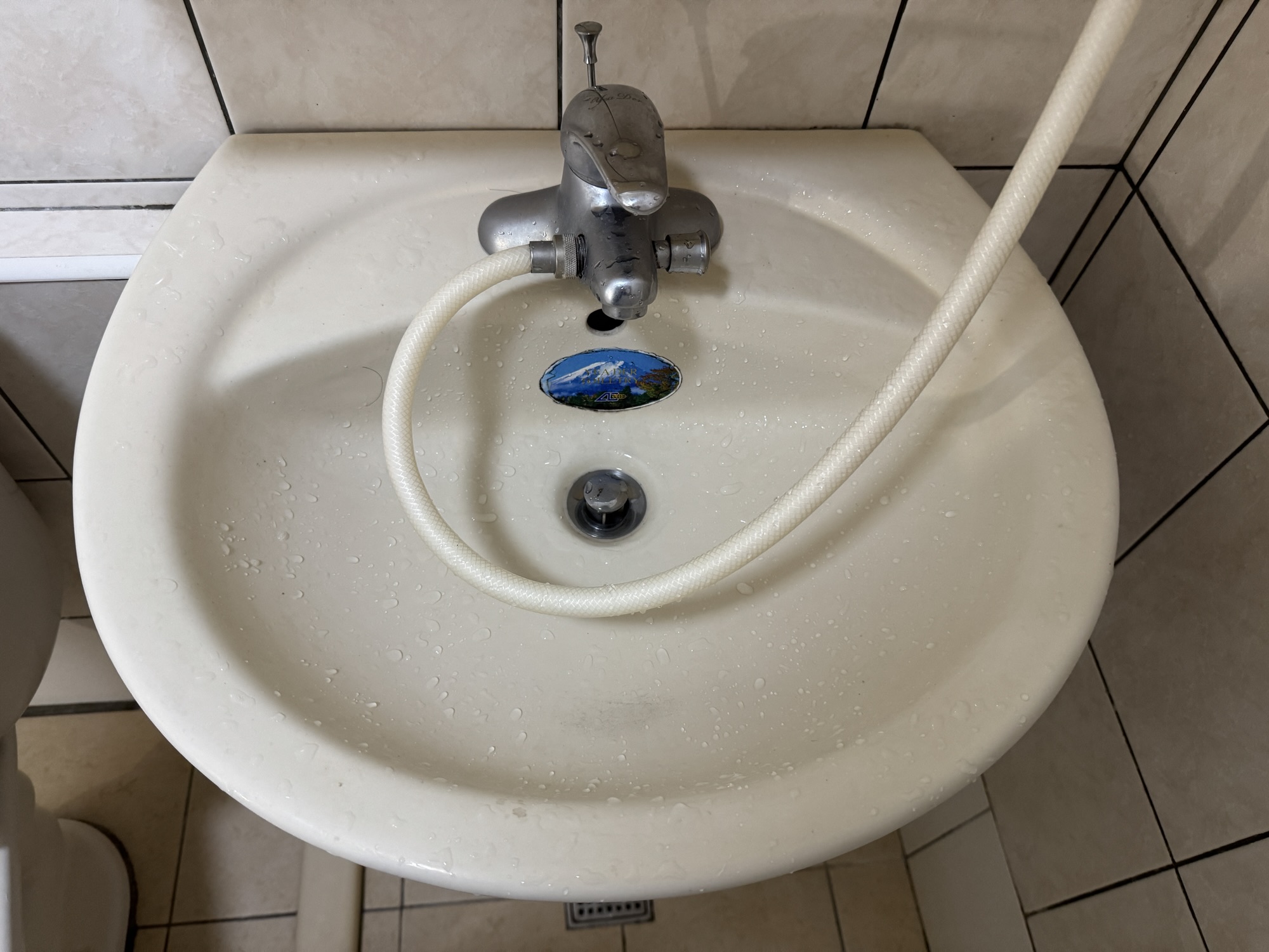 俺の部屋の洗面台&シャワー。工事代をケチったのかなぁ。嫌がらせみたいな出来なんだよね。
