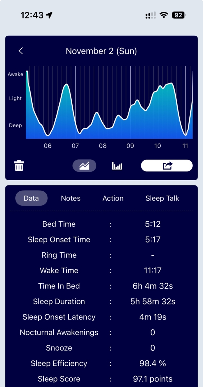 昨夜は朝5時まで脳が興奮してて、眠れなかった。でも、目覚ましかけずに寝たら11時過ぎまで寝てた。睡眠の点数も高かった。何よりも「一度も起きない」ってのが若者みたいで嬉しい(笑)