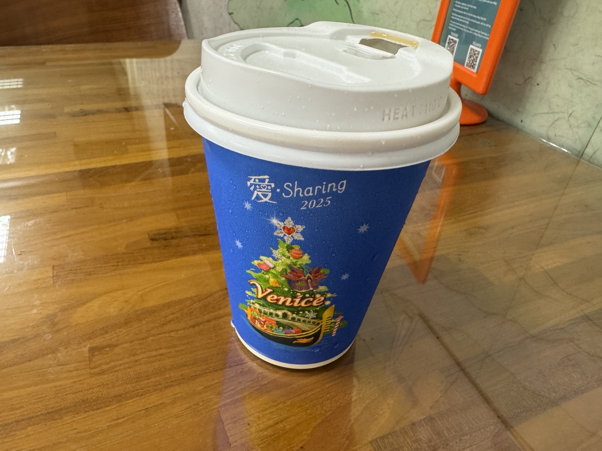 おしゃれな珈琲屋なら180元(900円)。セブンイレブンなら35元(175円)。これは後者。味は同じ(当社比)。注目すべきは、いずれも日本よりも高いってこと。