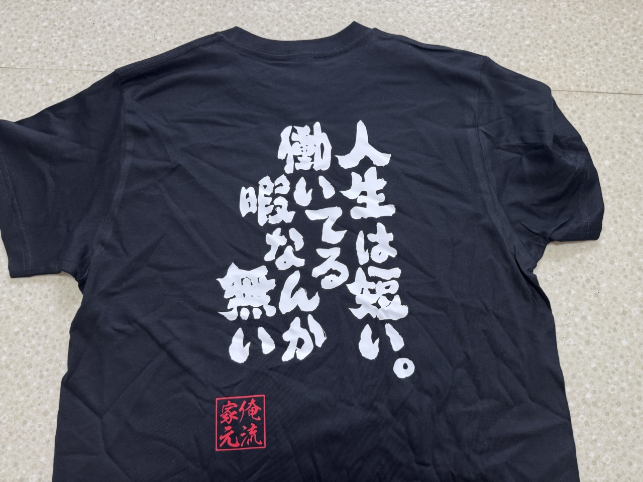 今回の帰国に合わせて、オリジナルの俺流シャツを10枚作った。今日はこれを着た。