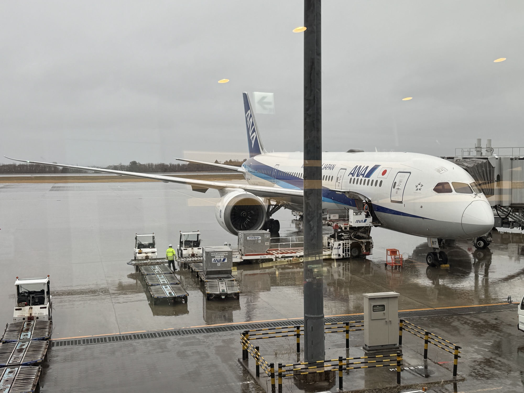 実は昨日のうちからANAからメッセージが届いていた。天気の影響で飛ばないかもしれないから、変更もキャンセルも手数料無料だよってことだった。明日の船に乗り遅れるとハワイへの飛行機を手配しないとならんなって考えたり、飛ぶ飛行機を全部予約して、どれかは飛んで、他は後から全部キャンセルしようとか、色々考えたけど、俺には専属の神様がいることを思い出して、何も手を打たなかった。![]()