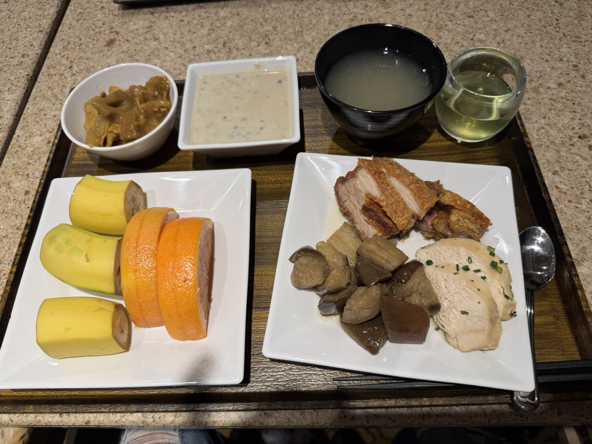 そう、船では毎晩フルコースを食べている。前菜、スープ、魚、肉、デザート、まさにフルコース。そいつを5Fで食べ終わったら14階のビュッフェでもう少し食べる。もうだめだ。太るわ。