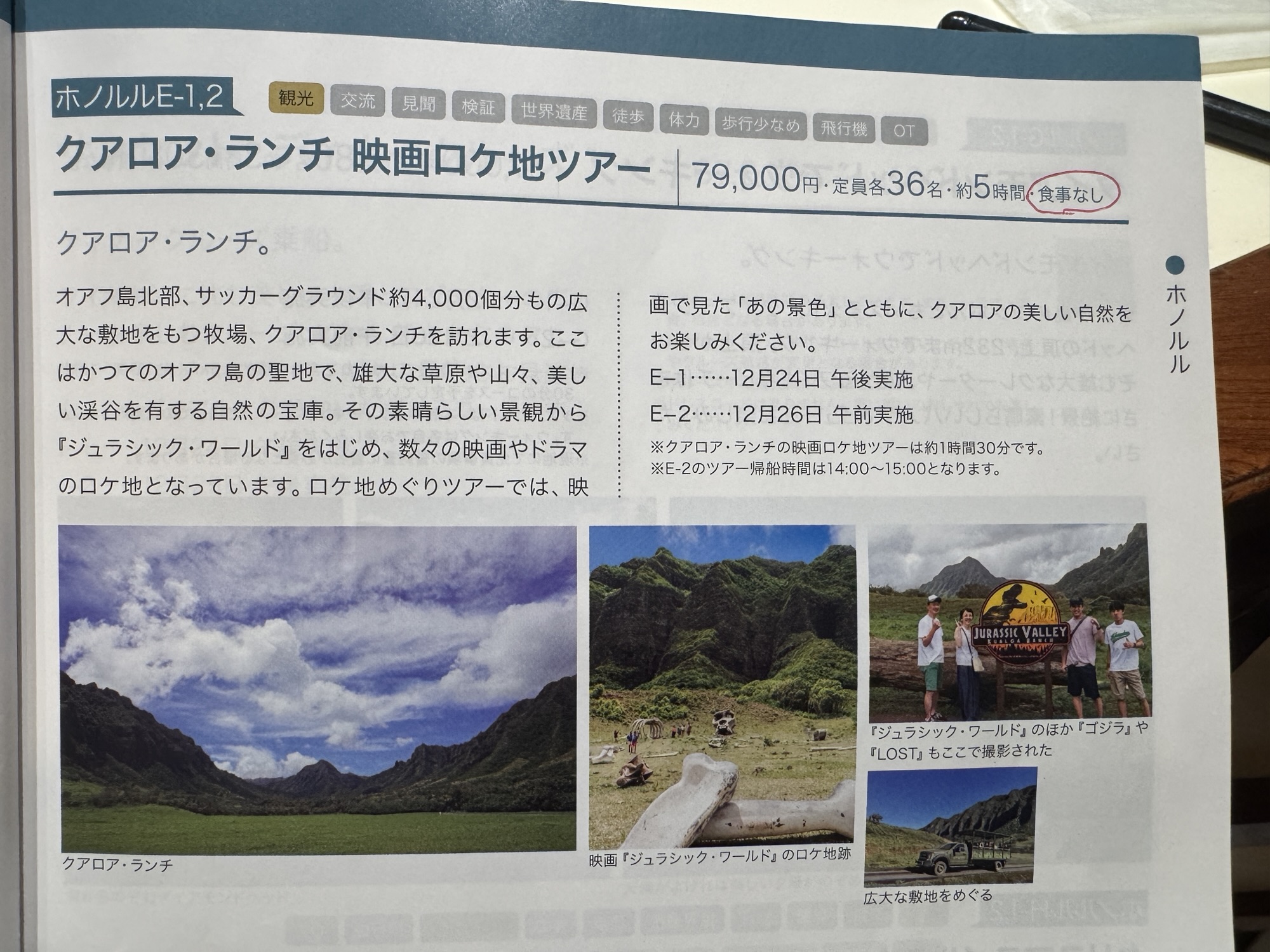 今日聞いた話。ハワイのオプショナルツアーに「クアドラランチ」ってのがあった。多くの参加者がランチを楽しみにして、朝食を抜いたりして空腹で参加したらしい。でも、そのツアーには食事はなかった。それは場所の名前でしかなかったのだ。参加者は口々に「ランチは何時からですか?」とガイドに聞いていたらしい。そのツアー、参加したかった。