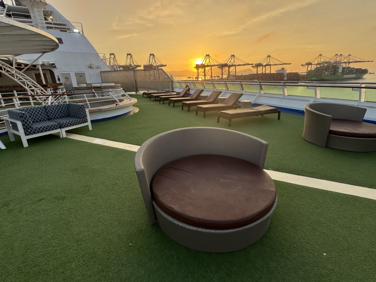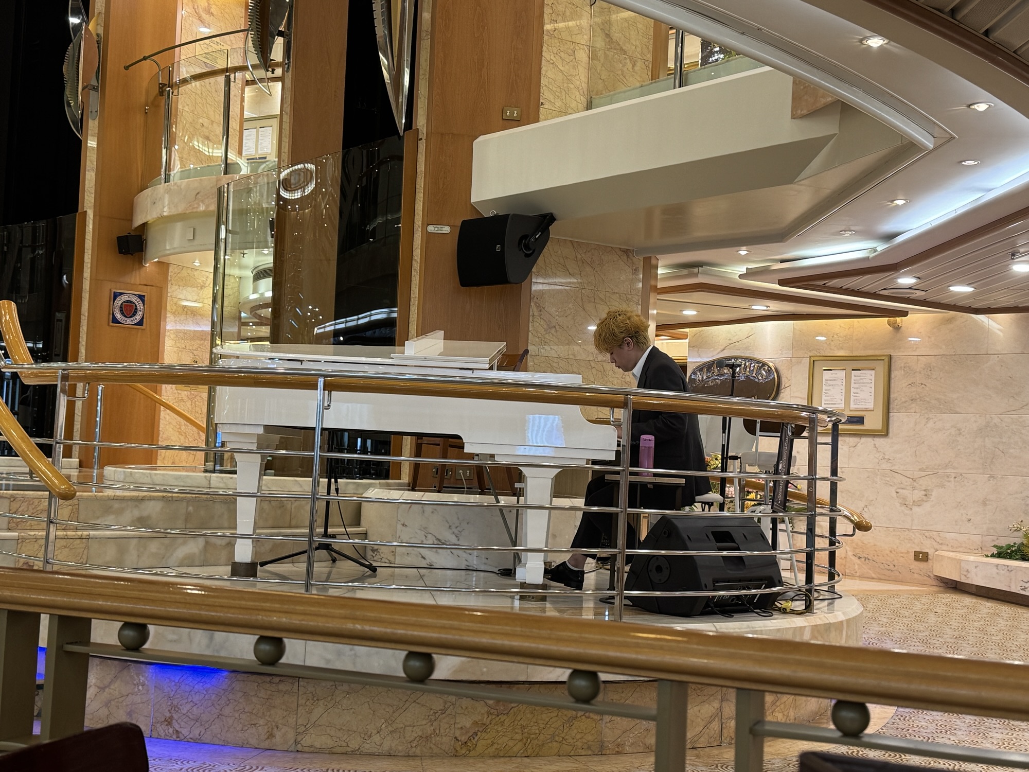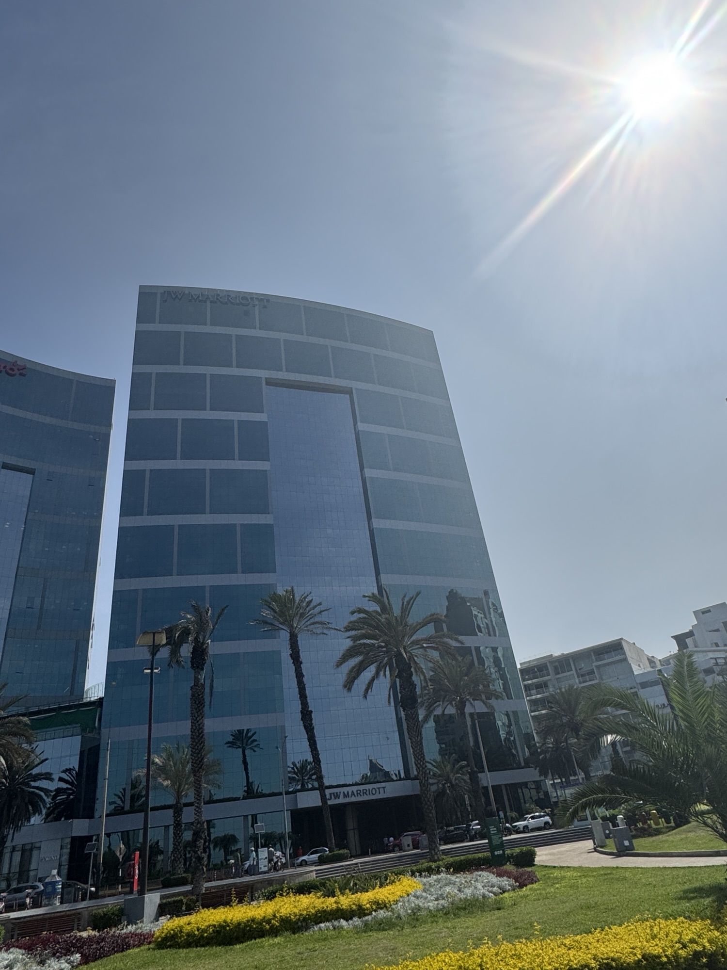 一緒に船に乗ってる人がマリオットのチタン会員でスイートルームに泊まってて、見せてもらった。このビルの最上階右端の部屋。