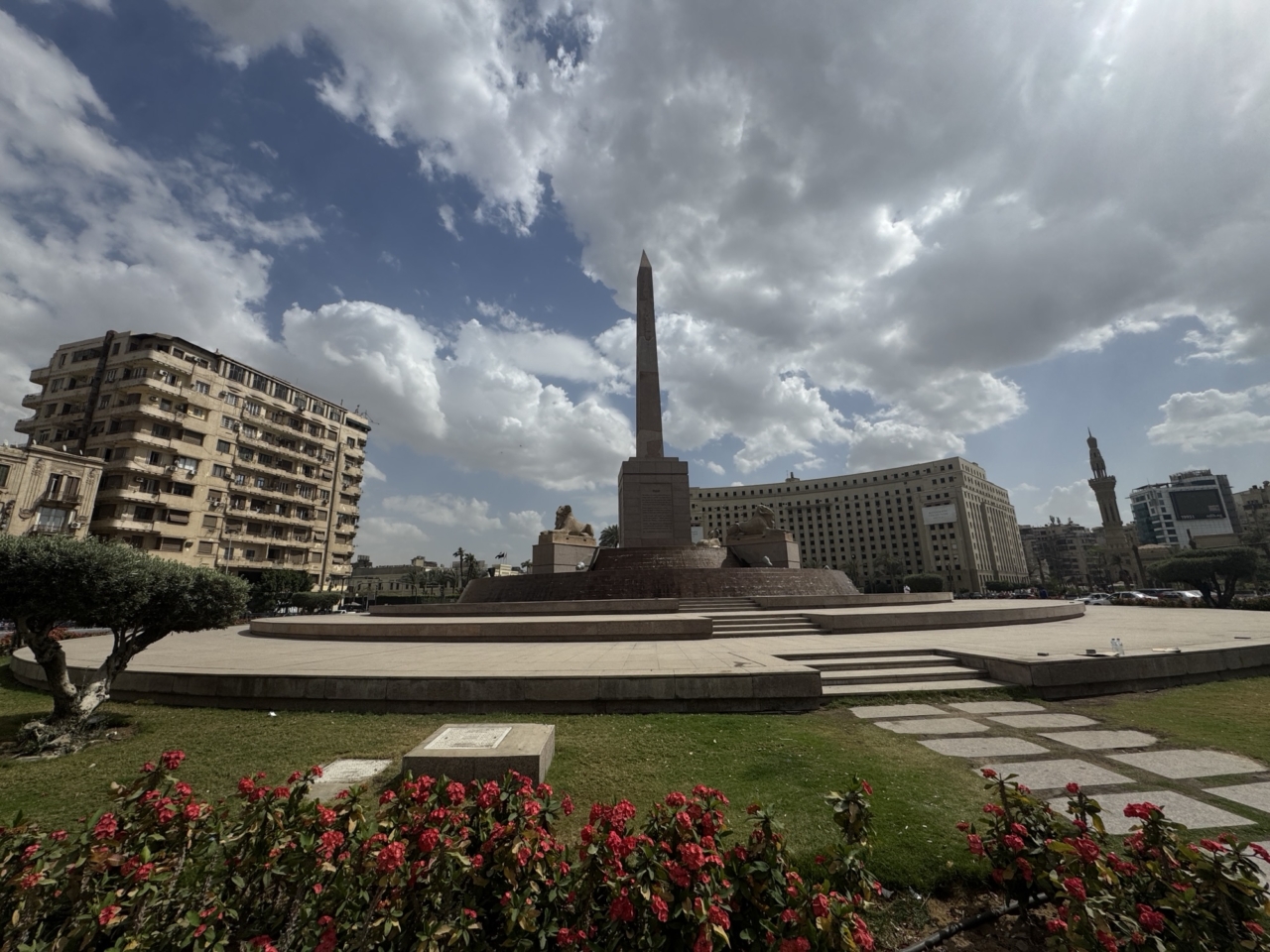 ガイドブックにタフリール広場ってのが載ってた。噴水もあって美しい塔なんだけどさ、ガードマン10人くらいで全部の通り道を塞いでて入れてくれないの。どんな意地悪なの?